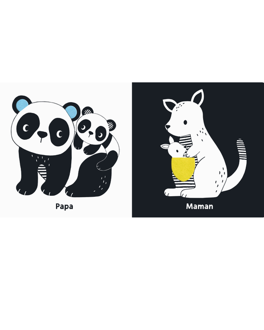Livre noir et blanc "Mes animaux tout doux" - Tourbillon